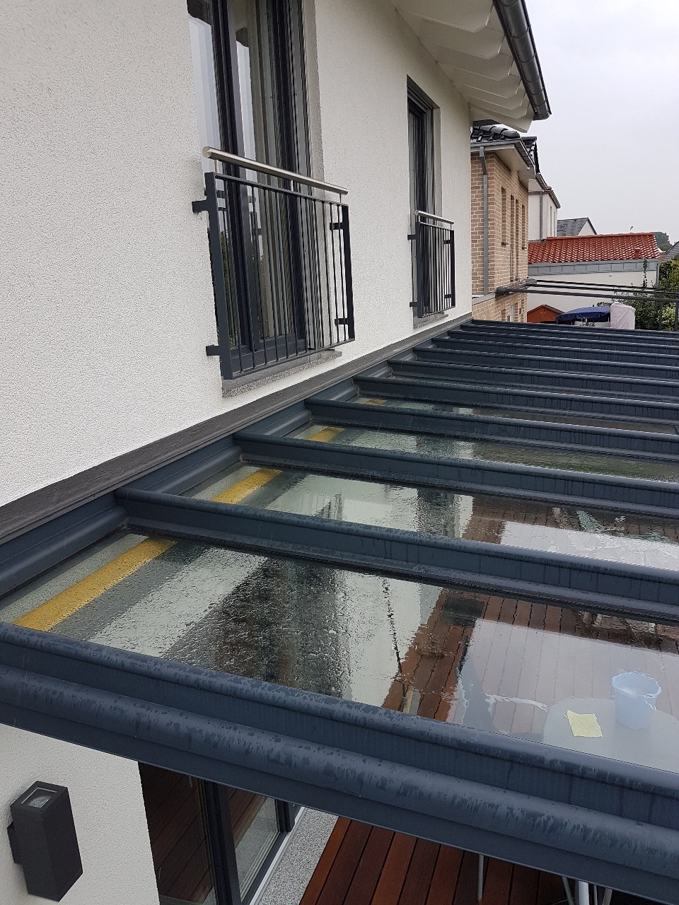In den meisten Fällen bewährt es sich für eine Terrasse mit Doppelstegplatten zu entscheiden, da diese das Sonnenlicht durchlassen und die Terrasse somit frei wirken lassen. Ein weiterer Vorteil bietet die Leichtbauweise eines Systems mit Doppelstegplatten. Dabei wird die Statik des Gebäudes nur minimal beansprucht. Die Mindestdachneigung bei Stegplatten liegt gerade mal bei 5°, das sind circa 9 cm/m.